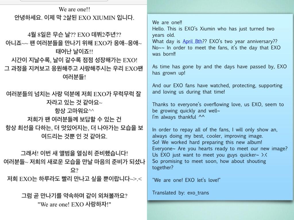 [EXO] 140409 EXO-M Website Update: [From. XIUMIN]